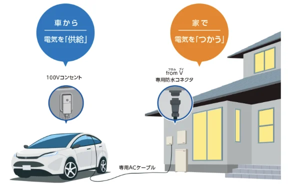 電気自動車やハイブリッド車の電気を取り込んで家でつかうことができます。