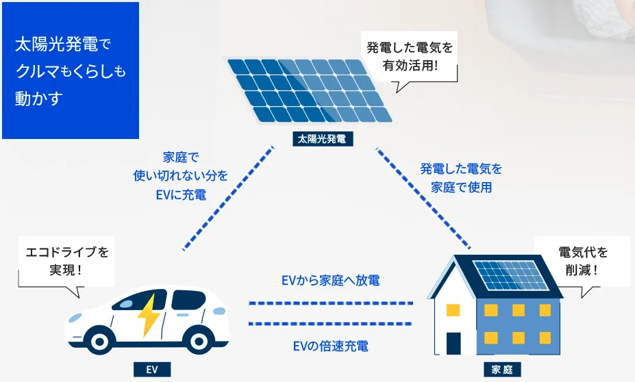 太陽光発電とEVを組み合わせて、自宅でつくった電気を上手に「家産家消」することで、
